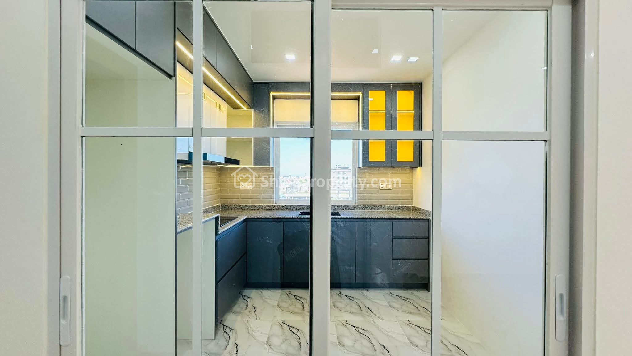 Marble design ကြွေပြားများတစ်အိမ်လုံးခင်းထားပြီး