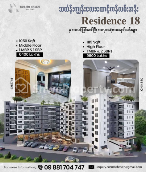 Property Name : သင်္ကန်းကျွန်းမြို့နယ်ရှိResidence 18 Condominiumအရောင်း/Residence 18 Condominium For Sales Thingangyun Township In Yangon/09892600050,09892600060