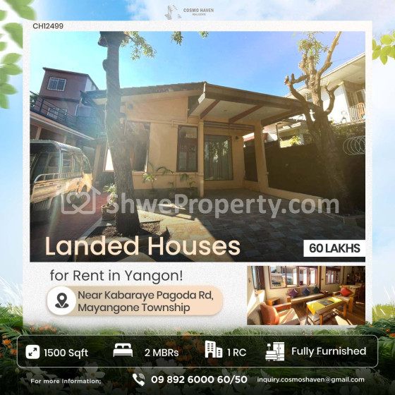 Property Name : ရန်ကုန်မြို့နယ်ရှိနေရာစုံနေရာကောင်းလုံးချင်းအိမ်ကောင်းအငှားများ/Landed House For Rent In Yangon/09892600050,09892600060