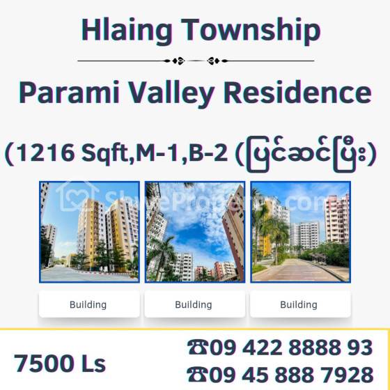 Property Name : လှိုင်မြို့နယ် လှိုင်တက္ကသိုလ် သီးသန့်ကမ္ဘာလေးတစ်ခုသဖွယ်တည်ရှိပြီး...အမြင့်မကြိုက်သော လူကြီးမိဘများအတွက် (Parami Valley Residence) မှ အရောင်းခန်း