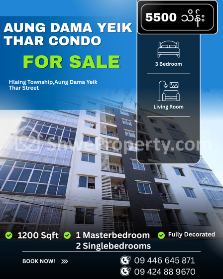 #Aung Dama Yeik Thar Condo မှ (3) Bedrooms အရောင်းခန်းလေးနှင့် မိတ်ဆက်ပေးချင်ပါတယ်...