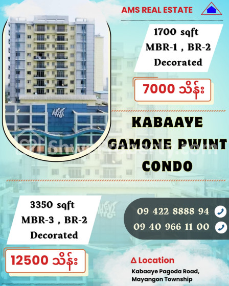 Property Name : မရမ်းကုန်းမြို့နယ်၊ကမ္ဘာအေးဂမုန်းပွင့် ကွန်ဒို (1700sqft)၊For Sale