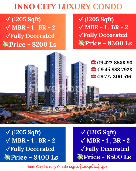 Property Name : Inno City Luxury Condo , (3-BEDROOM) , 8200 (သိန်း) , ဈေးတန်အရောင်းခန်းများ