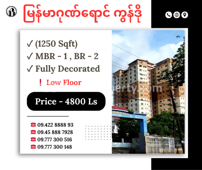 Property Name : တာမွေမြို့နယ် ၊ မြန်မာဂုဏ်ရောင်ကွန်ဒို (1250 Sqft) , For Sale