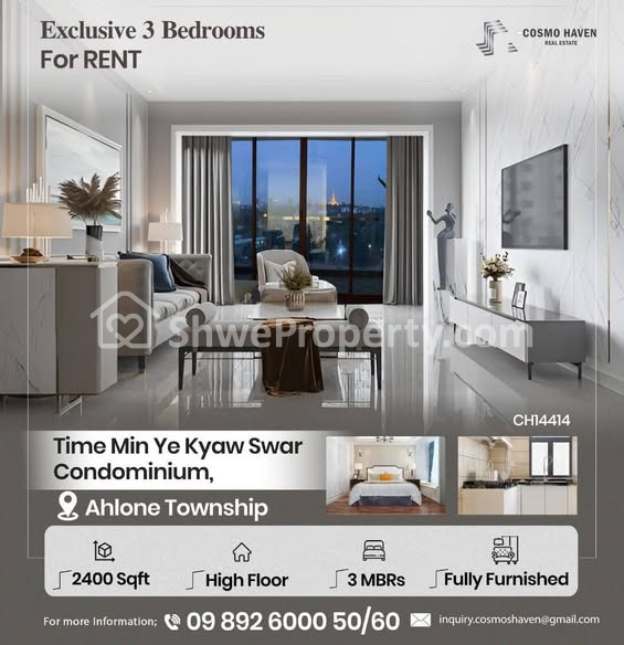 3 bedroom, 3 bathroom Condo for rent in Ahlon, Yangon