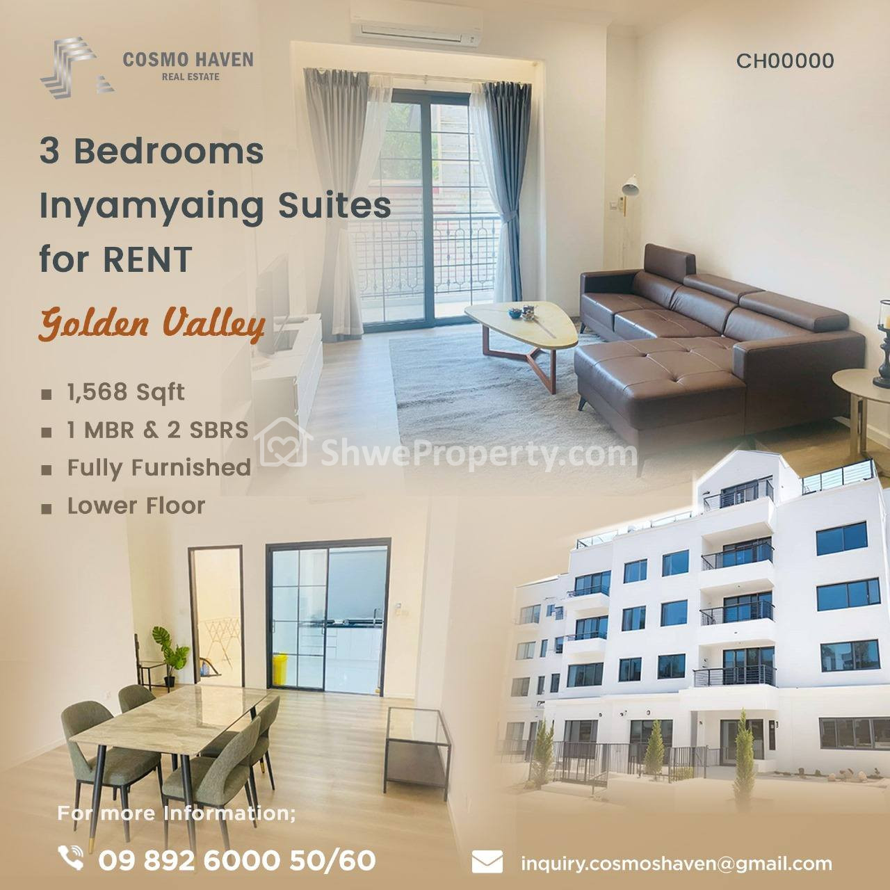 Living in three-bedrooms Inya Myaing Suites featuring a modern & classic design , in Golden Valley 🪴!