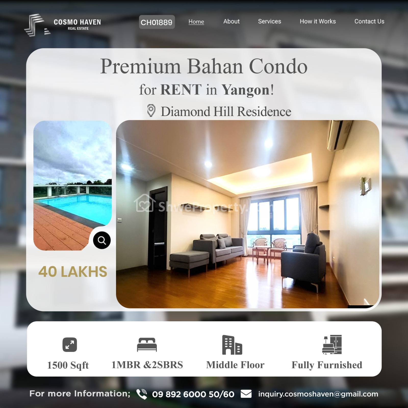 We are serving not only the more high-end condominiums for rent or sales in this area but also around Yangon, don’t be hesitate to call for the most efficient One Stop services (24 Hours) .