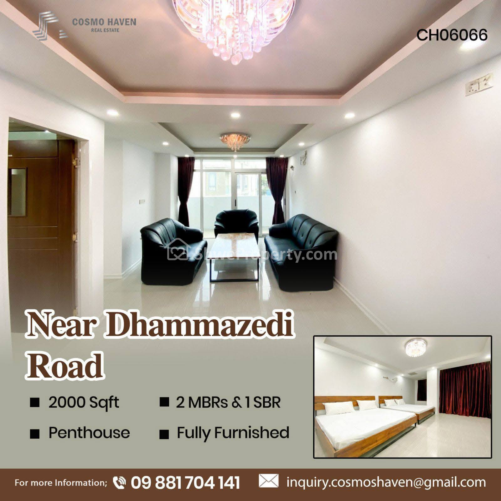 Property Name : ဗဟန်းမြို့နယ်၊ ဓမ္မစေတီလမ်းအနီးရှိPenthouseအငှား/Penthouse for Rent Bahan Township in Yangon/09892600050,09892600060