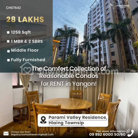 Property Name : ရန်ကုန်မြို့နယ်ရှိမြို့နယ်စုံကွန်ဒိုအငှားများ/ Parami Valley Residence Condominium for Rent Haling Township in Yangon