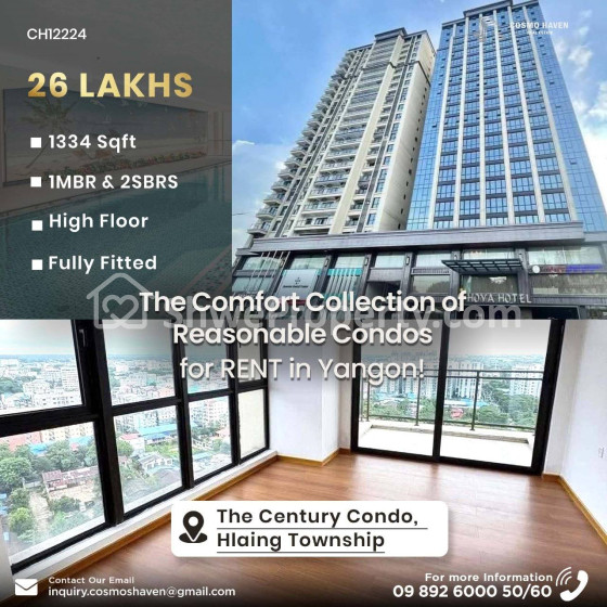 Property Name : ရန်ကုန်မြို့နယ်ရှိမြို့နယ်စုံကွန်ဒိုအငှားများ/The Century Condominium for Rent Hlaing Township In Yangon