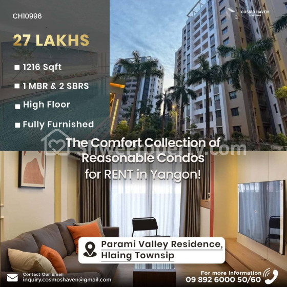 Property Name : ရန်ကုန်မြို့နယ်ရှိမြို့နယ်စုံကွန်ဒိုအငှားများ/Parami Valley Residence Condominium for Rent Hlaing Township In Yangon