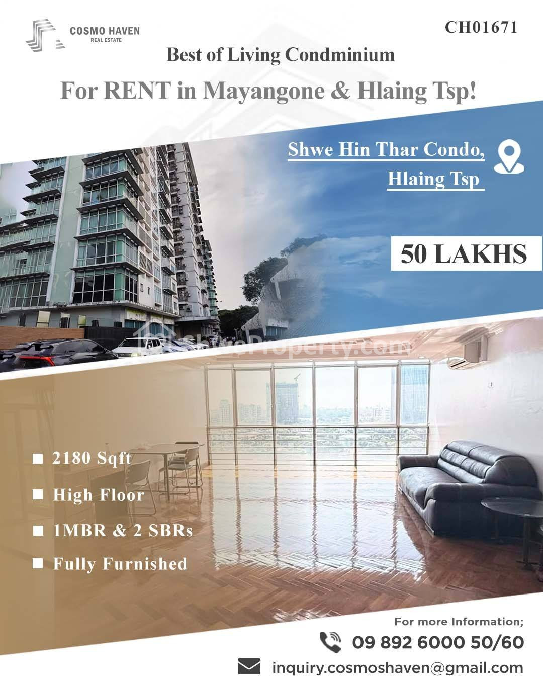 We are serving not only the more high-end condominiums for rent or sales in this area but also around Yangon, don’t be hesitate to call for the most efficient One Stop services (24 Hours) .