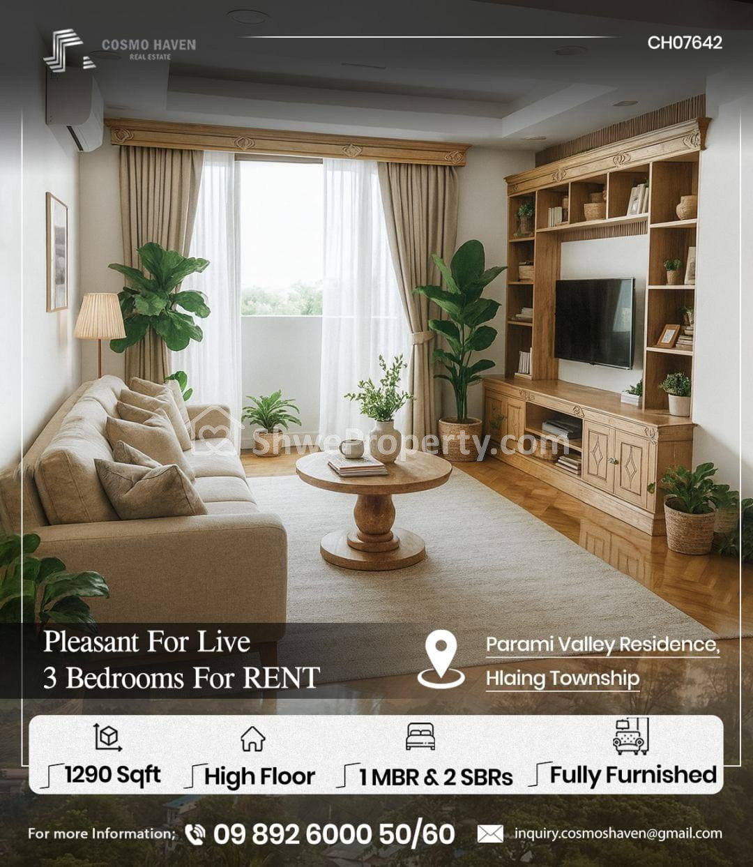 Pleasant condo 3 bedrooms For RENT 🌐, @Parami Valley Residence , Hlaing Township , Yangon!