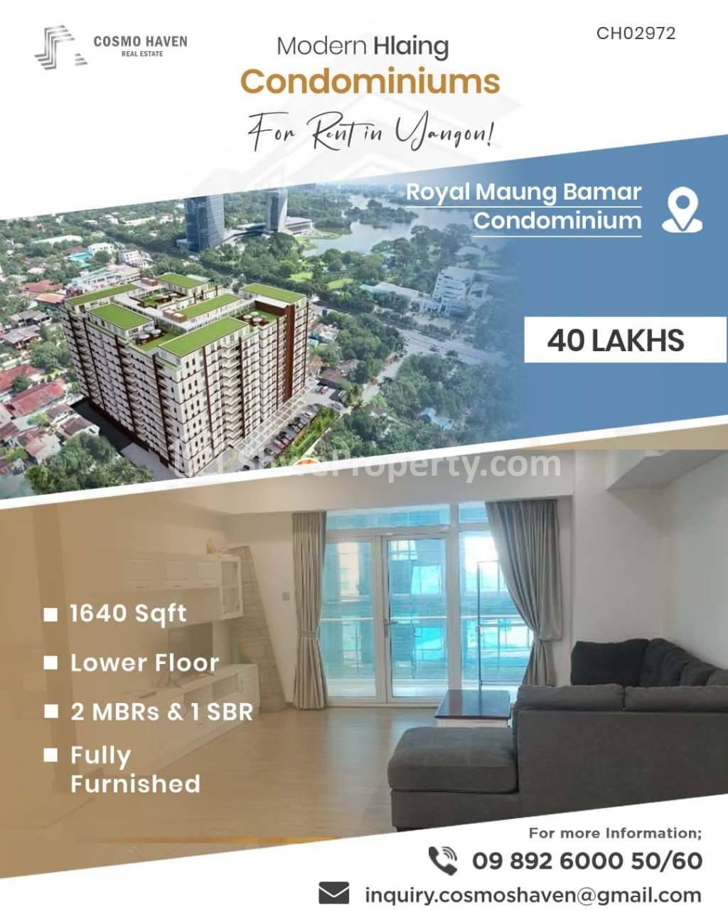 We are serving not only the more high-end condominiums for rent or sales in this area but also around Yangon, don’t be hesitate to call for the most efficient One Stop services (24 Hours) .