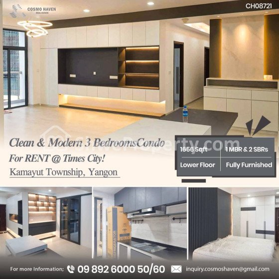 Modern & Clean, The 3 Bedrooms Condo for RENT @ Times City Condominium, Yangon!