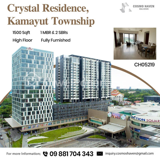 📍စည်ကားလှပတဲ့ ကမာရွတ်မြို့နယ်၊ Junction Square နဲ့ တစ်ဆက်တည်း တည်ရှိနေတဲ့ Crystal Residence မှာ အဆင့်မြင့် ဇိမ်ခံနေထိုင်မှုပုံစံကို ခံစားလိုက်ပါ။ 🌇