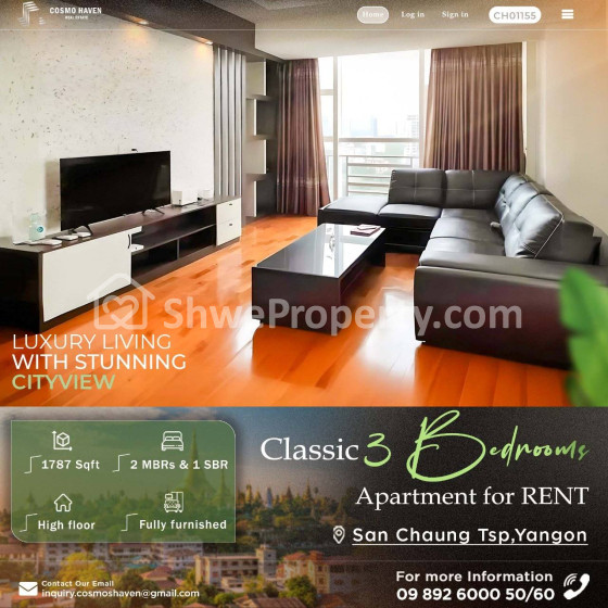 This high-floor condominium is perfectly situated in San Chaung Township, the popular area of the city surrounded by restaurants, shopping centers🏪 Everything can be reached just minutes away. Easy to go wherever, 🏃🏻♂Provides spacious 1,787 sqft🛋, ideal for families👨👩👧👦Enjoy facilities, including a swimming pool, gym, and secure car park🚘24-hour electricity and security services, ensuring a safe and comfortable living environment🔐