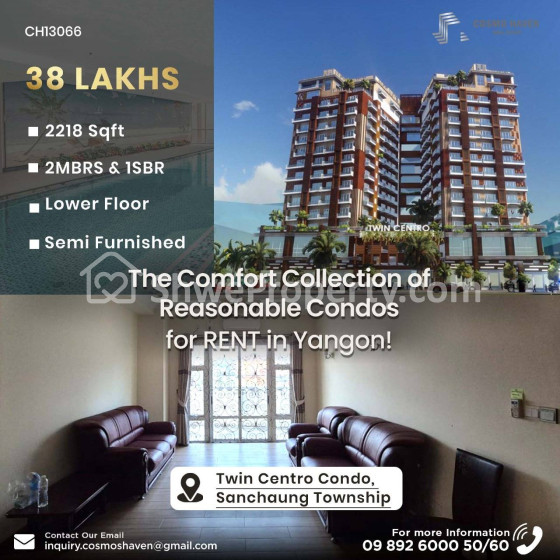 Property Name : ရန်ကုန်မြို့နယ်ရှိမြို့နယ်စုံကွန်ဒိုအငှားများ/Twin Centro Condominium for Rent Sanchaung Township in Yangon