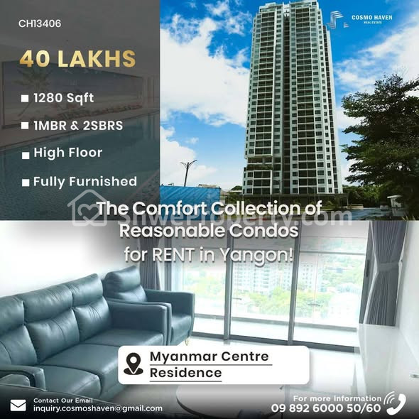 Luxury 3 Bedrooms Condominium for RENT at 45 Lakhs @Myanmar Centre Residence @Yankin Tsp 🏢✨