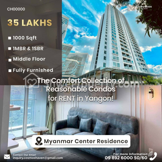 The Myanmar Centre Residence Available Units for RENT in Yankin Tsp, Yangon!