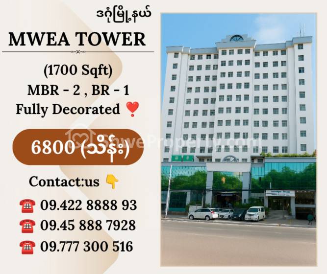 Property Name : ဒဂုံမြို့နယ် ရွှေတိဂုံဘုရားလမ်းမပေါ်မှာ တည်ရှိပြီး အရောင်းခန်းရှားပါးတဲ့ MWEA TOWER မှ အရောင်းခန်း