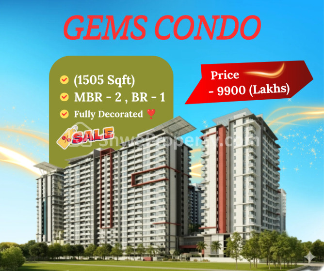 Property Name : လှိုင်မြို့နယ် ၊ Gems Condo , (1505 Sqft) , For Sale