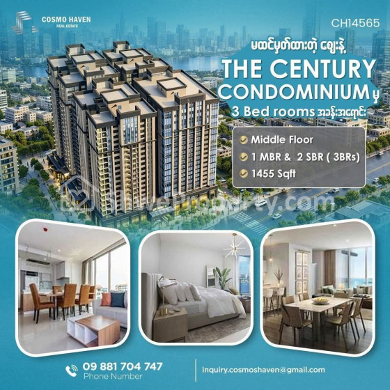 Property Name : လှိုင်မြို့နယ်ရှိThe Century Condominiumအရောင်း/The Century Condominium for Sales Hlaing Township in Yangon/09892600050,09892600060
