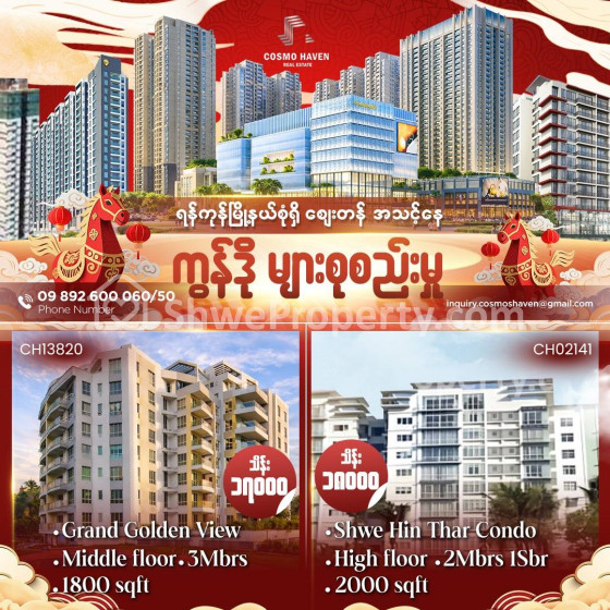 ✨ COSMO HAVEN REAL ESTATE နဲ့ ရန်ကုန်မြို့နယ်စုံရှိ Luxury Condo အခန်းကောင်းတွေ ရှာဖွေပါ ! ✨