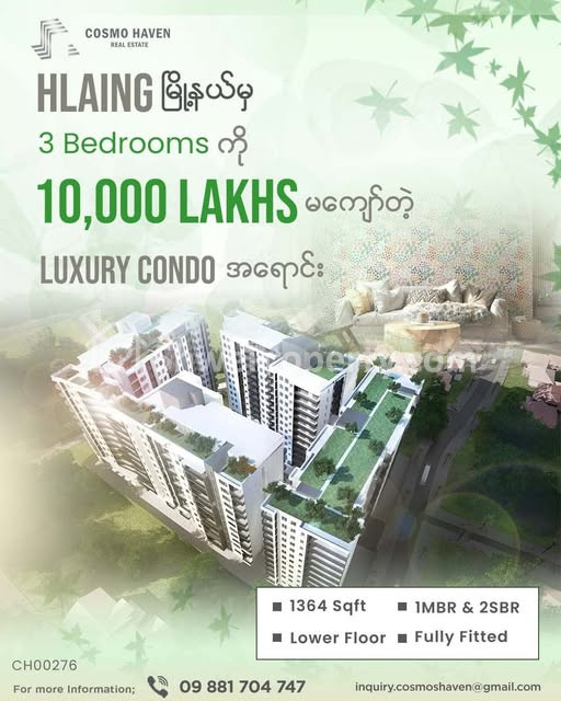 #TheLeafResidence #Hlaing #CondoForSale #YangonCondo #LuxuryLiving #InvestmentProperty #3Bedrooms #CosmoheavenRealEstate #RealEstateMyanmar #CondoMyanmar #အရောင်းခန်း #လှိုင်မြို့နယ် #ကွန်ဒို #YangonProperty #LuxuryCondo #PremiumLocation #ReadyToMoveIn