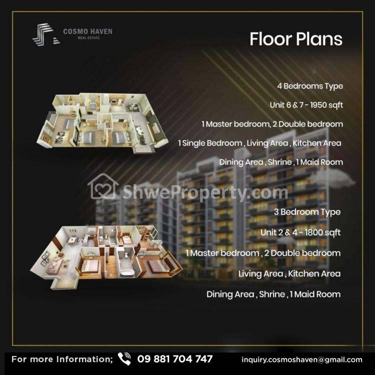 * Master Bedroom ကြီးများ အပါအဝင် အိပ်ခန်း ၃ ခန်းမှ ၄ ခန်းအထိ ပါဝင်ပါတယ်။ 👨👩👧👦