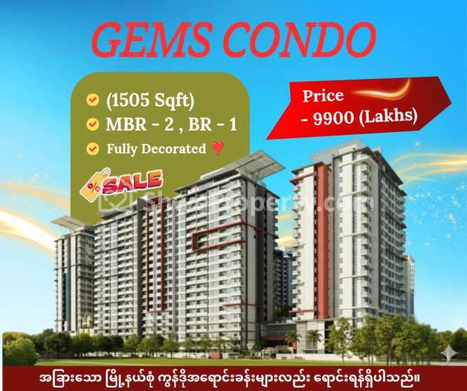 Property Name : လှိုင်မြို့နယ် ၊ Gems Condo , (1505 Sqft) , For Sale