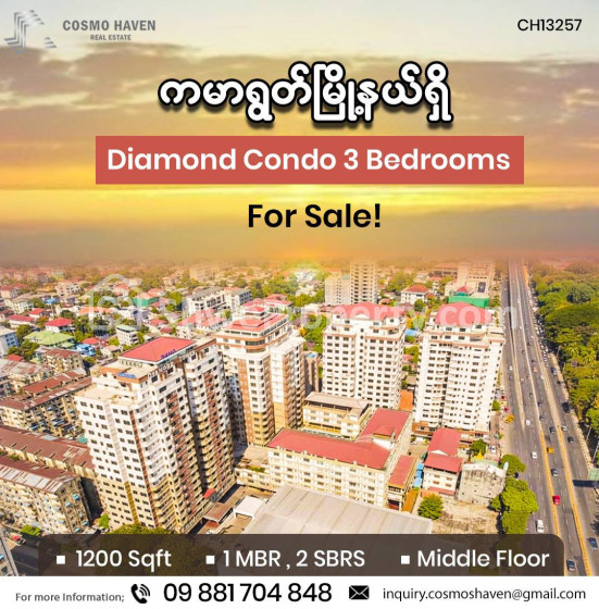 Property Name : ကမာရွတ်မြို့နယ်ရှိDiamond Condominiumအငှား/Diamond Condominium for Sales Kamayut Township in Yangon