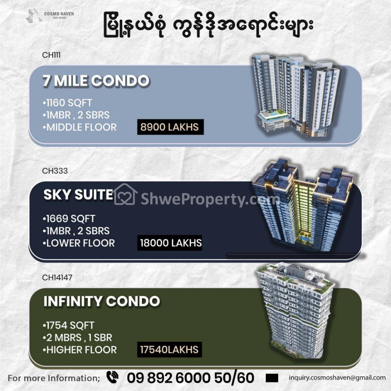 CosmoHaven အိမ်ခြံမြေ Company ကို အခုဘဲဆက်သွယ်လိုက်ပါ ခင်ဗျာ 🤝