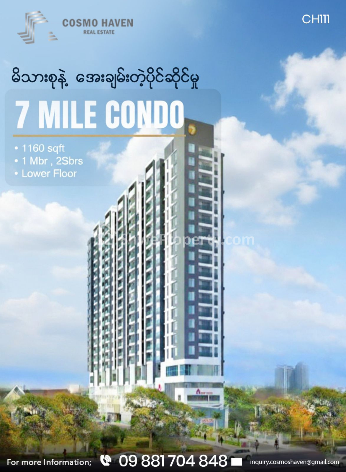 စိတ်ဝင်စားတယ်ဆိုရင် အသေးစိတ်သိရှိနိုင်ဖို့ COSMOHEAVEN Real Estate ကို အခုပဲဆက်သွယ်လိုက်ပါ ခင်ဗျာ။ 💖
