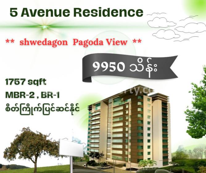 ရမ်းကုန်းမြို့နယ်၊ ပြည်လမ်းမကြီးနှင့် ကမ္ဘာအေးဘုရားလမ်းမကြီးထောင့် အချက်အချာကျသော Location ကောင်း 8 miles လမ်းဆုံ အနီးတွင် ခမ်းနားထည်ဝါစွာ တည်ဆောက်ထားပြီး ဆန်းသစ်သည့် ခေတ်မှီ အပြင်အဆင်များဖြင့် Luxury Condo အသစ်စက်စက် အရောင်းခန်း