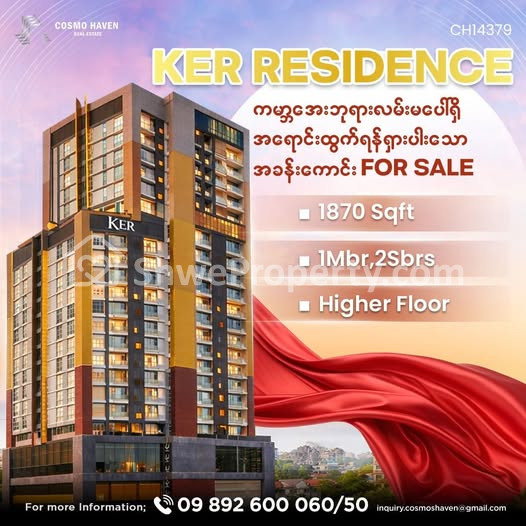 Property Name : မရမ်းကုန်းမြို့နယ်ရှိKER Residence Condominium အရောင်း/KER Residence Condominium For Sales Mayangone Township In Yangon/09892600050,09892600060