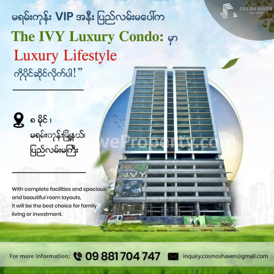 💎 မရမ်းကုန်း VIP အနီး ပြည်လမ်းမပေါ်က The IVY Luxury Condo: မှာ Luxury Lifestyle ကိုပိုင်ဆိုင်လိုက်ပါ! ✨