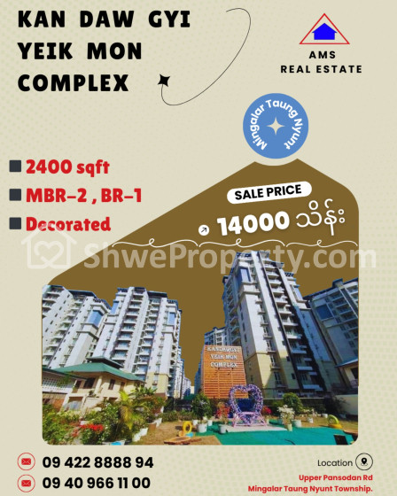 Property Name : မင်္ဂလာတောင်ညွှန့်မြို့နယ်၊Kan Daw Gyi Yeik Mon Complex (2400sqft)၊For Sale
