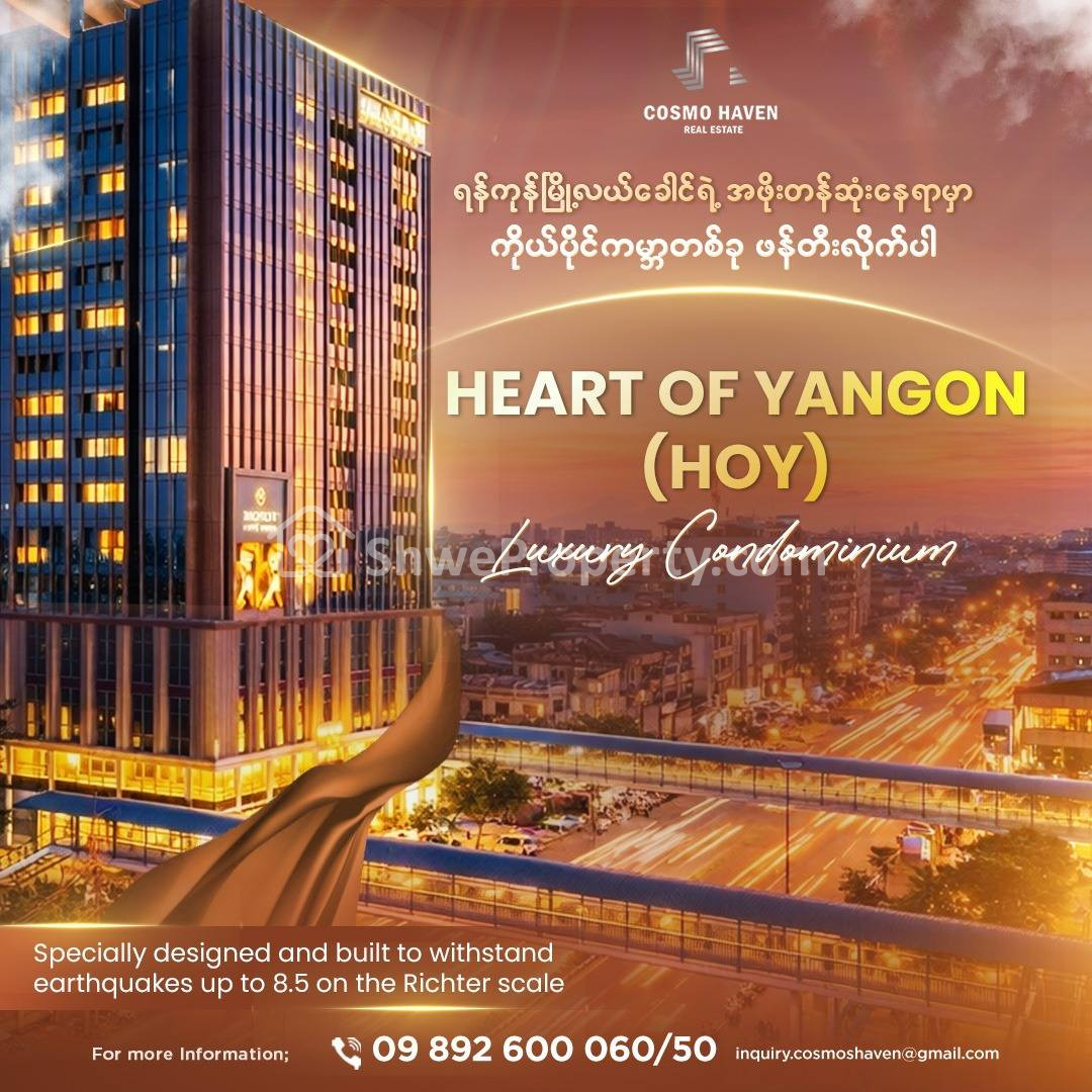 ရန်ကုန်မြို့ရဲ့ အချက်အချာကျတဲ့ ဆူးလေဘုရားလမ်းနဲ့ အနော်ရထာလမ်းဆုံမှာ တည်ရှိတဲ့ Heart of Yangon (HOY) Luxury Condominium ဟာ ခေတ်မီလူနေမှုပုံစံကို မြတ်နိုးသူများအတွက် အထူးသင့်လျော်တဲ့ ရွေးချယ်မှုတစ်ခု ဖြစ်မှာပါ 🏢🌟