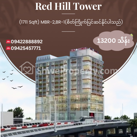 Property Name : စမ်းချောင်းမြို့နယ် ၊ Red Hill Tower (1711 Sqft)For Sale