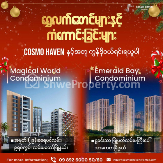 ✨️ဒီနှစ် ခရစ္စမတ်နဲ့ နှစ်သစ်ကာလကို Cosmo Haven Real Estate ကနေ အထူးဆုလက်ဆောင်တွေနဲ့ အတူ ပျော်ရွှင်စွာ ကြိုဆိုလိုက်ပါ...... ရန်ကုန်မြို့ရဲ့ နေရာအစုံက စိတ်ချရတဲ့ Condo တွေကို Bank Loan သို့မဟုတ် အတိုးမဲ့ Developer Loan များနဲ့ ဝယ်ယူပြီး စိတ်လှုပ်ရှားစရာ Lucky Draw ဆုကြီးများကို ကံစမ်းလိုက်ပါ! 🤩💸