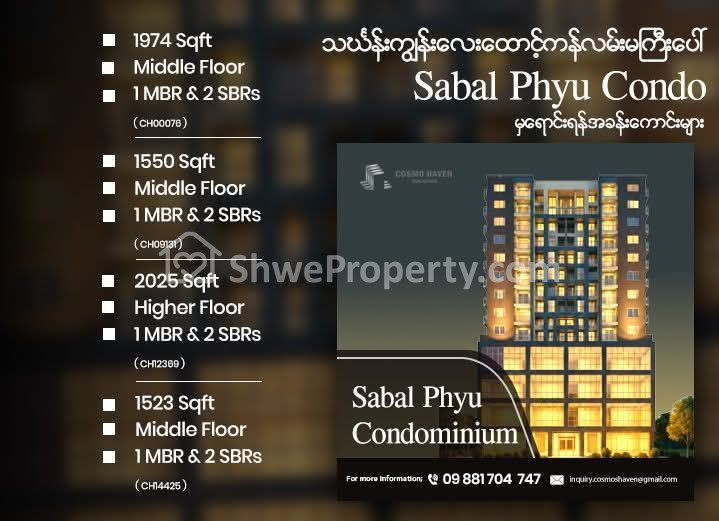 Property Name : သင်္ကန်းကျွန်းမြို့နယ်ရှိ Sabal Phyu Condominium အရောင်းများ/Sabal Phyu Condominium for Sales Thingangyun Township in Yangon/09892600050,09892600060