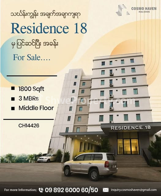 သင့်ရဲ့ အိမ်မက်ကို Residence 18 မှာ အကောင်အထည်ဖော်ဖို့ Cosmo Haven Real Estate ကိုအခုပဲဆတ်သွယ်လိုက်ပါ...........