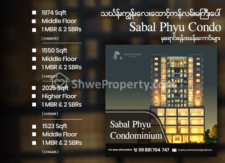 Property Name : သင်္ကန်းကျွန်းမြို့နယ်ရှိSapal Phyu Condominiumအရောင်းများ/Sapal Phyu Condominium For Sales Thingangyun Township In Yangon/09892600050,09892600060