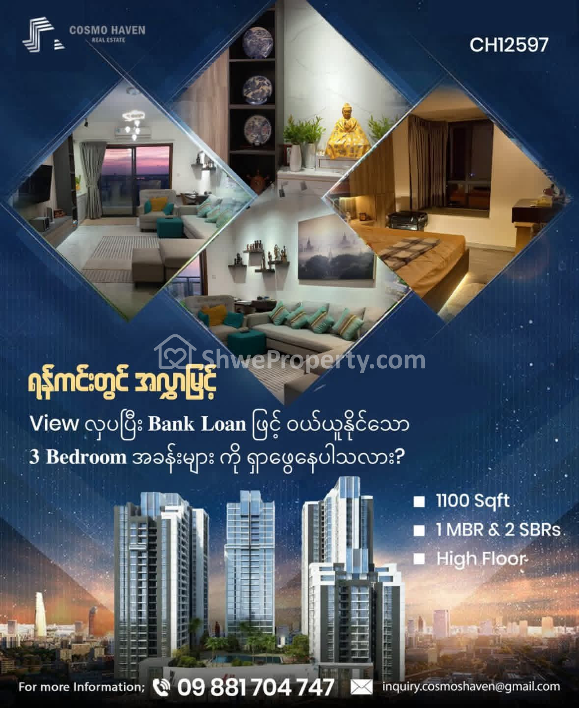 3 bedroom, 3 bathroom Condo for sale in Yankin, Yangon
