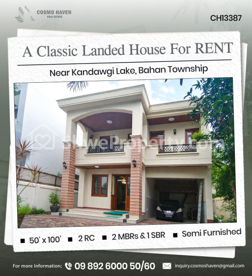 Property Name : ဗဟန်းမြို့နယ်ရှိနေရာကောင်းလုံးချင်းအိမ်အငှား/ Landed House for Rent Bahan Township in Yangon/09892600050,09892600060