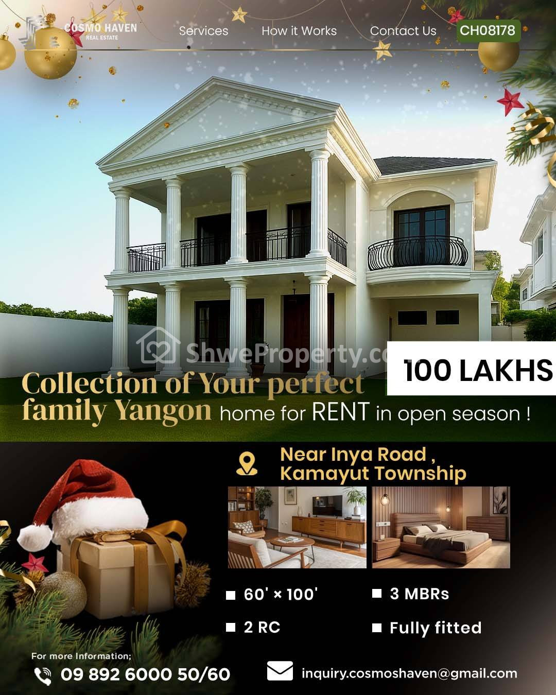 3 bedroom, 3 bathroom Privatehouse for rent in Kamaryut, Yangon