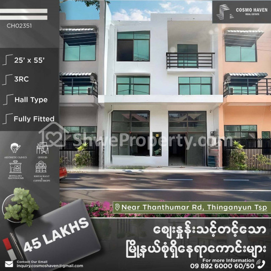 ရန်ကုန်မြို့အတွင်းရှိ သင့်တင့်သောဈေးနူန်း 💷သိန်း20ဝန်းကျင် မှစတင်ပြီး 💶သိန်း100 ဝန်းကျင်အထိ နေရာကောင်းများရှိ မြို့နယ်စုံလုံးချင်း ကောင်းများအား 🧭အချိန်ကုန်သက်သာစွာဖြင့် လုပ်ငန်းရှင်လူကြီးမင်းများ ရွှေးချယ်နိုင်စေရန် Cosmo Haven မှရွှေးချယ်ပြီး တစ်စုတစ်စည်းထဲ ဖော်ပြပေးလိုက်ပါတယ်ခင်ဗျာ။ 🧨🧨🧨