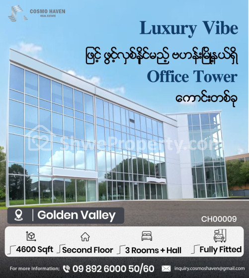 ရုံးခန်းနေရာများဖွင့်လှစ်ရန် 🏢 Office Tower နေရာကောင်းတစ်ခုဖြစ်သည့်အပြင် လုပ်ငန်းလိုအပ်ချက်အရ စိတ်ကြိုက်ပြင်ဆင်ဖွဲ့စည်းနိုင်ပြီး Location ကောင်းမွန်ပြီး ညွန်းရလွယ်ကူသောနေရာတစ်ခုမှတည်ရှိသောကြောင့် လုပ်ငန်းရှင်လူကြီးမင်းများ Commercial များလုပ်ကိုင်ရန် အထူးသင့်လျော်သော နေရာတစ်ခုကို Cosmo Haven Real Estate ကနေဖော်ပြပေးလိုက်ပါတယ့်ရှင့် ✌✌💁💁💁