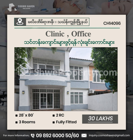 ☀️☀️☀️ 🏗️ရုံးခန်း🏠၊ Clinic 💒နှင့် သင်တန်းကျောင်းများ🏯ဖွင့်လှစ်ရန်အတွက် ရန်ကုန်မြို့ရဲ့ အချက်ချာကျတဲ့ နေရာများတွင် တည်ရှိပြီး ဝန်ထမ်းများအတွက် သွားလာရလွယ်ကူအဆင်ပြေစေတဲ့ 💸💸 သိန်း ၃၀ မှ သိန်း ၁၅၀ 💸💸အတွင်းရှိ လုံးချင်းကောင်းများကို လူကြီးမင်းတို့စိတ်ကြိုက် အချိန်ကုန်သက်သာစွာ ရွေးချယ်နိုင်ရန် Cosmo Haven မှတစုတစည်းတည်းဖော်ပြပေးလိုက်ပါတယ်ရှင့်။🎄🎄🆙️🆙️